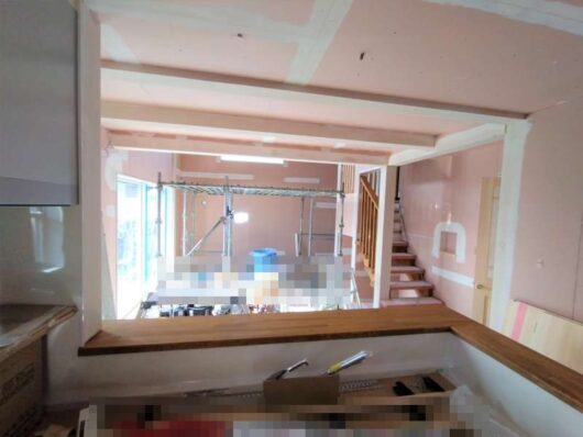 就学前のお子さんがいらっしゃるのでリビングの様子も分かるように半クローズドの空間にされました。