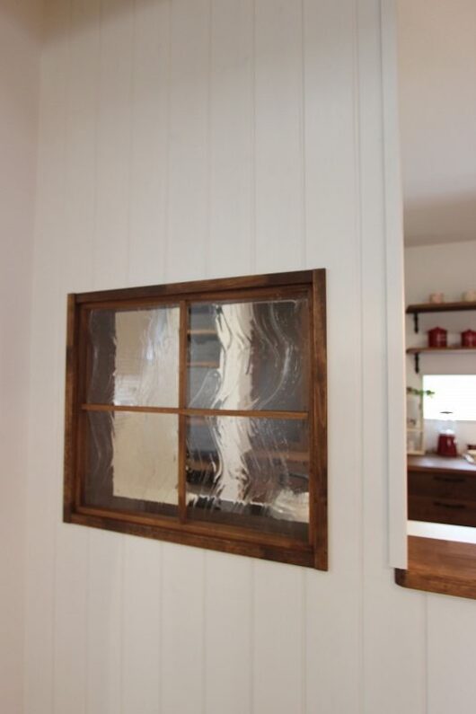キッチン上の3連造作窓に、チェッカーガラスを入れた施工例。