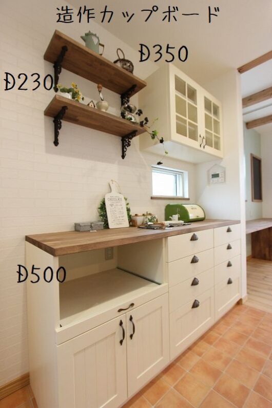 キッチンプラン時、カップボードの奥行き&高さがとても大事です。