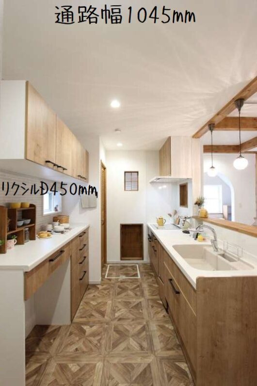 弊社で良くプランする、3.8畳キッチンの通路幅