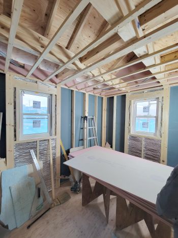 石膏ボード(ピンク&黄色部)が貼られた状態。