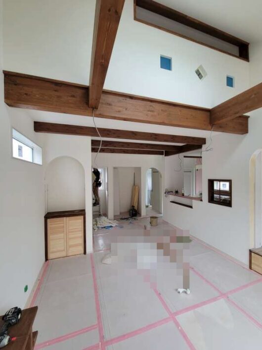 今回はロフト部分はもちろん、壁を仕上げていない収納空間も広いです。