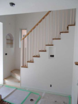 階段は吹き抜けで開放感があり、窓から明るい光が差し込みます。