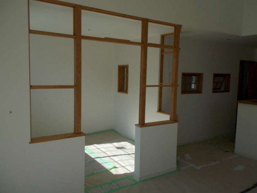 左は施主支給の無垢材に泡ガラス入りの2窓 、右は弊社造作の窓です。
