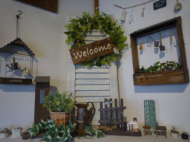 アンティーク風の加工もしてあって、棚も深くハンギングも出来ます☆