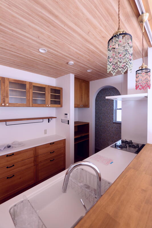 お建て替え前のお家で使っていた扉や棚を再利用した造作家具も必見です。