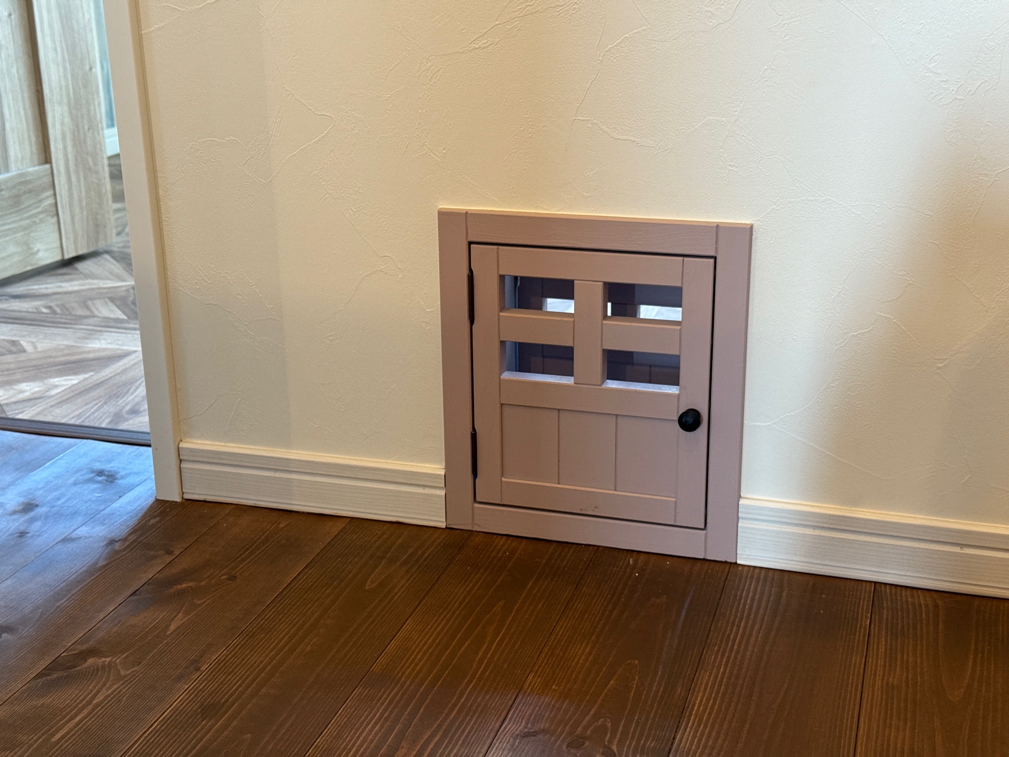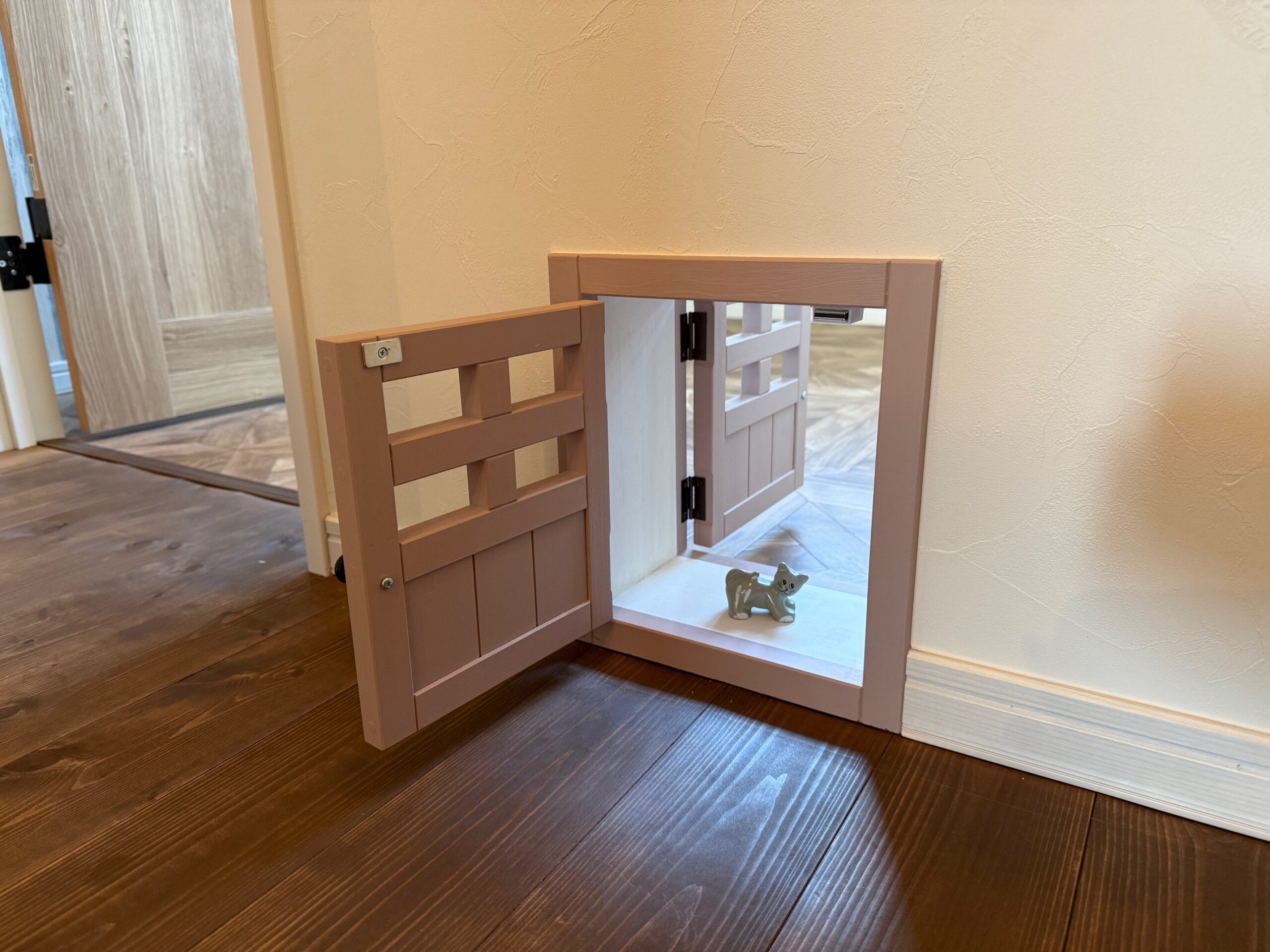 こちらのアトリエには猫ちゃんが自由に出入りできるように小さなドアを取り付けました!