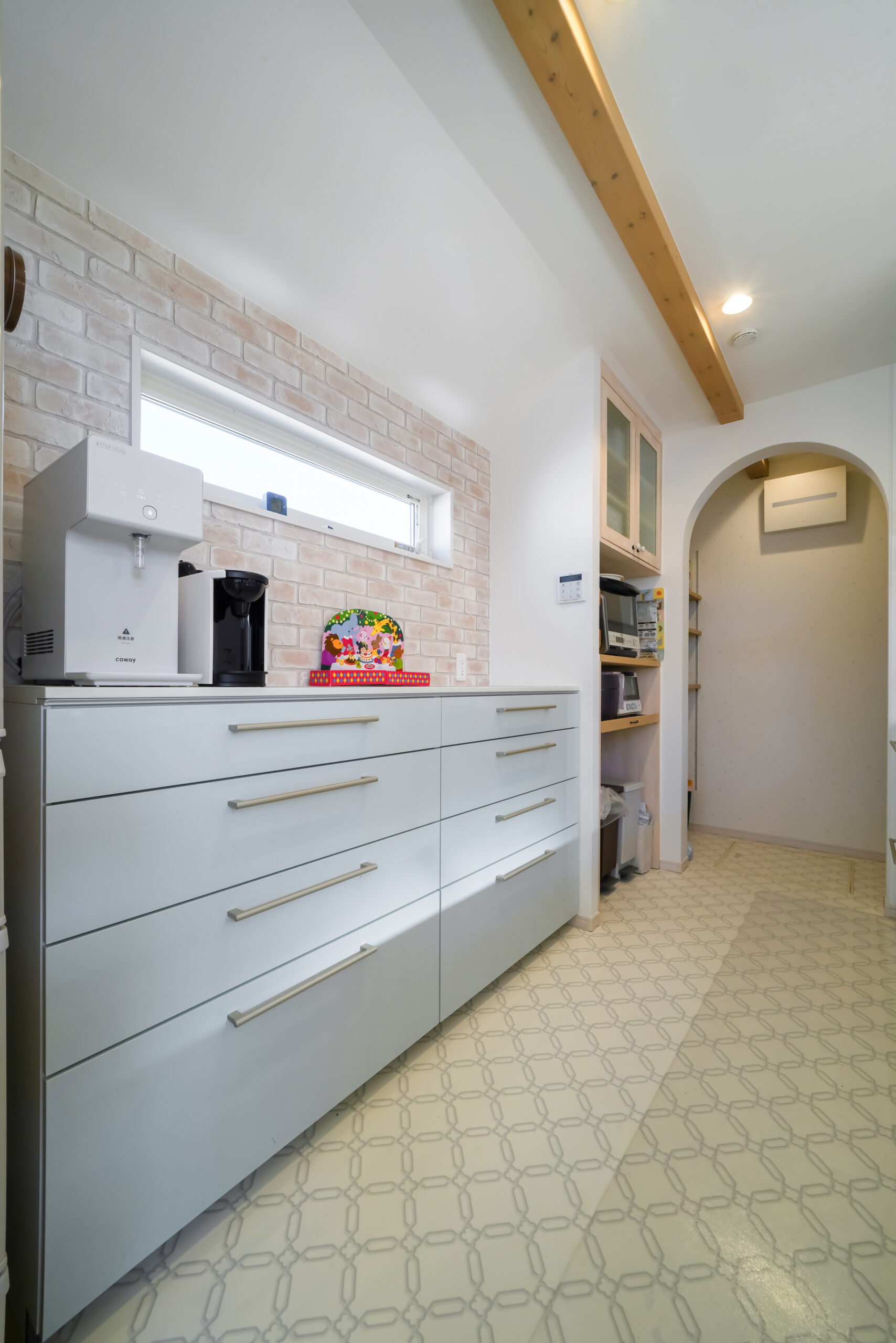 床は柄のあるクッションフロア(タイル風)で、空間にリズムが出ています。