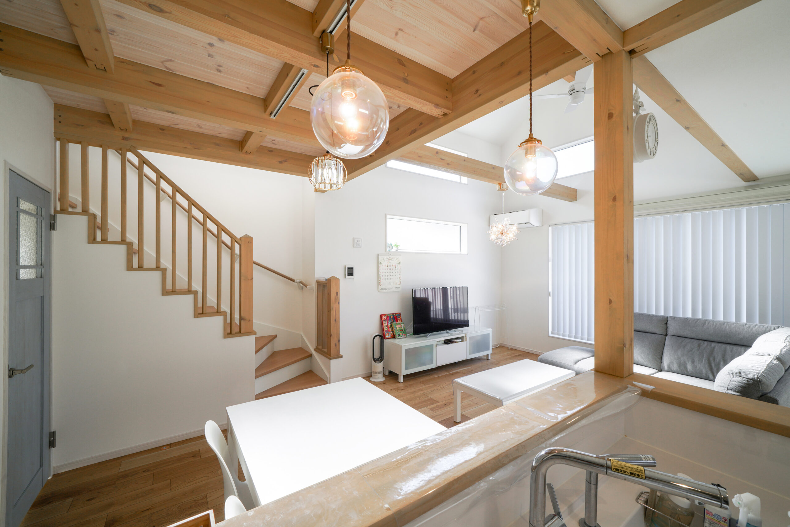 まずはLDK。梁見せ天井×やわらかな光で、開放感たっぷり