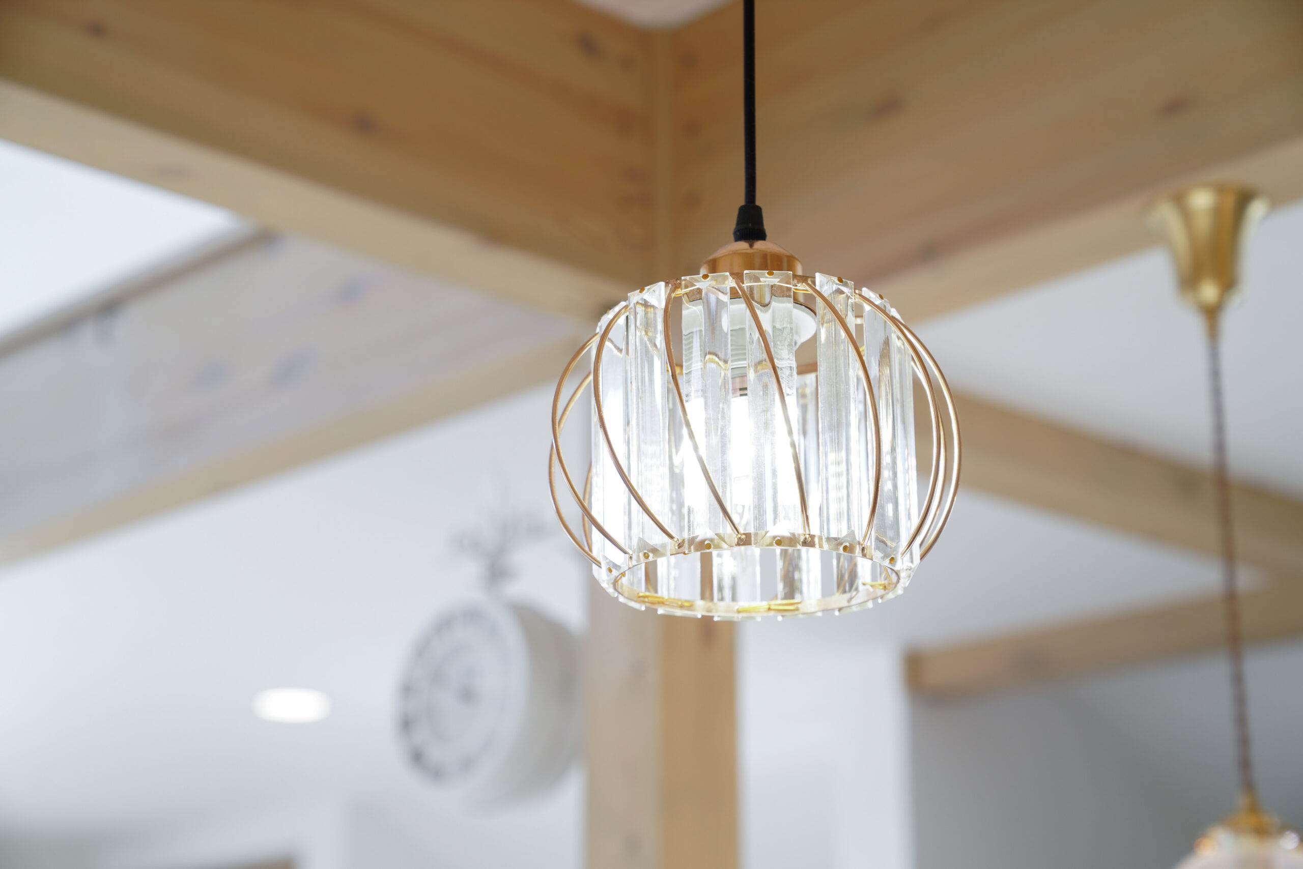 キッチン・ダイニング側の照明は、ガラスやクリスタルのような質感がきらっと可愛くて、見上げたくなる存在感✨️