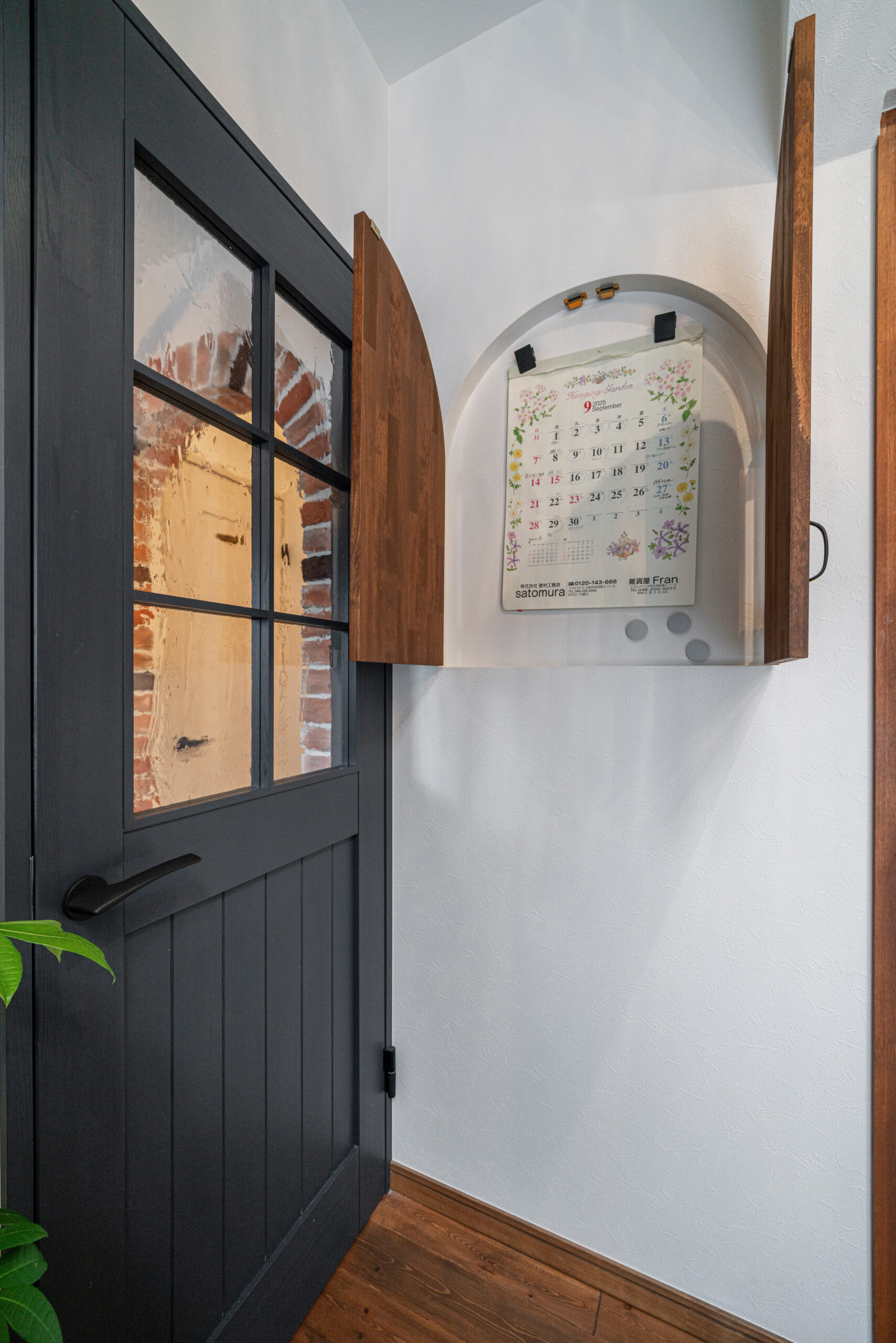 アーチ形のニッチは、扉付きの“見せる収納”。