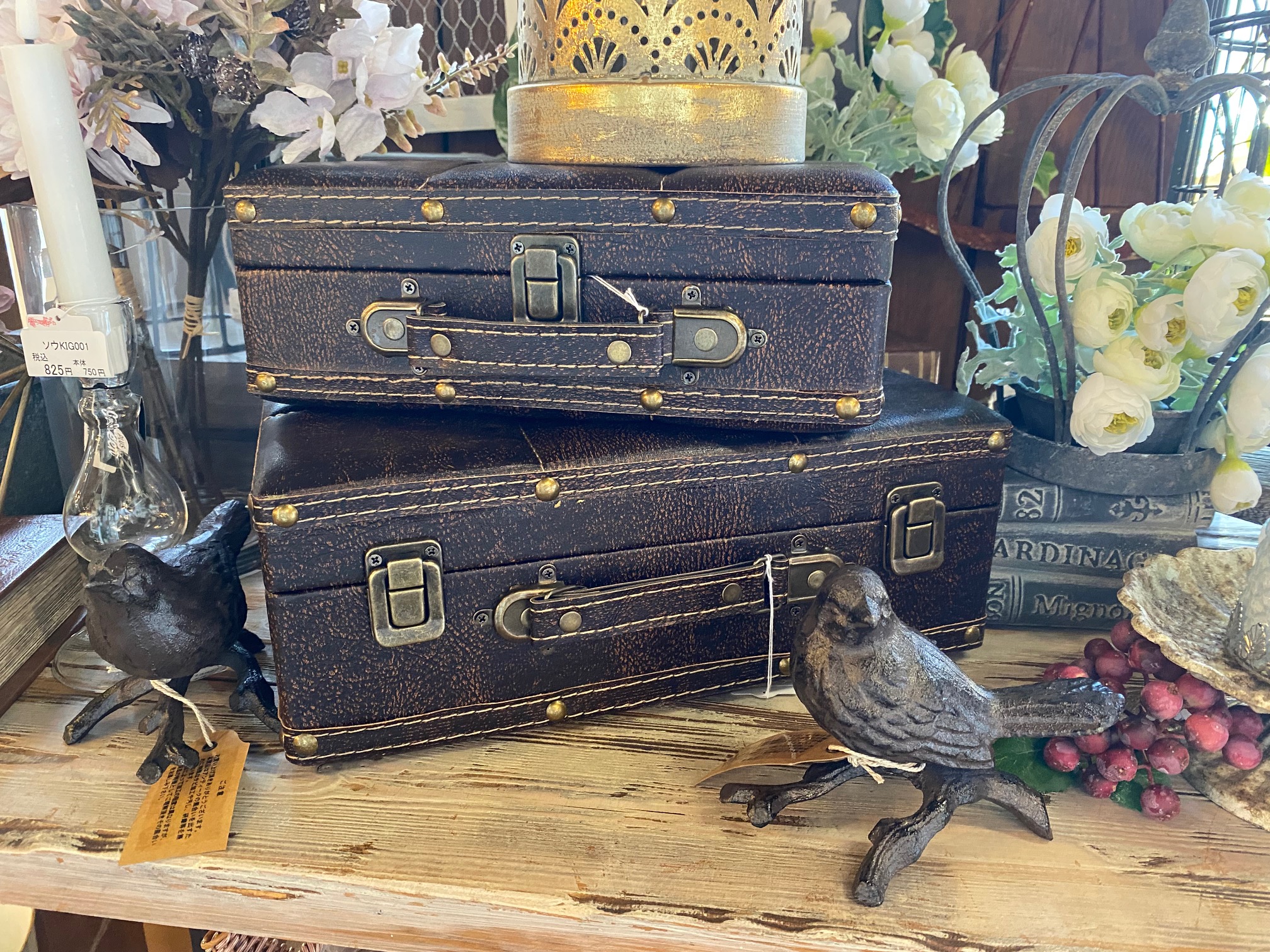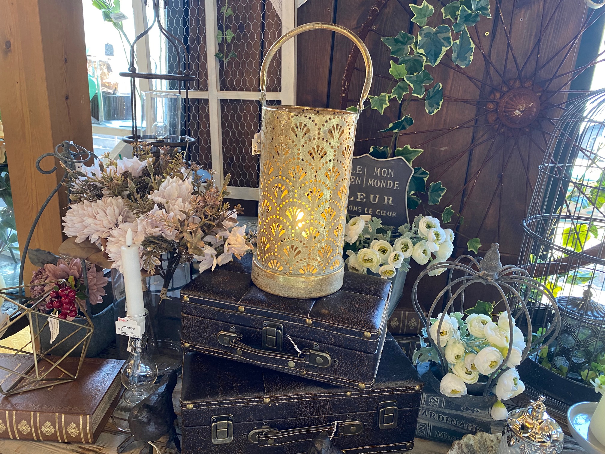 アンティーク調のお品物が沢山入荷しましたので、入り口横のディスプレイに仲間入り