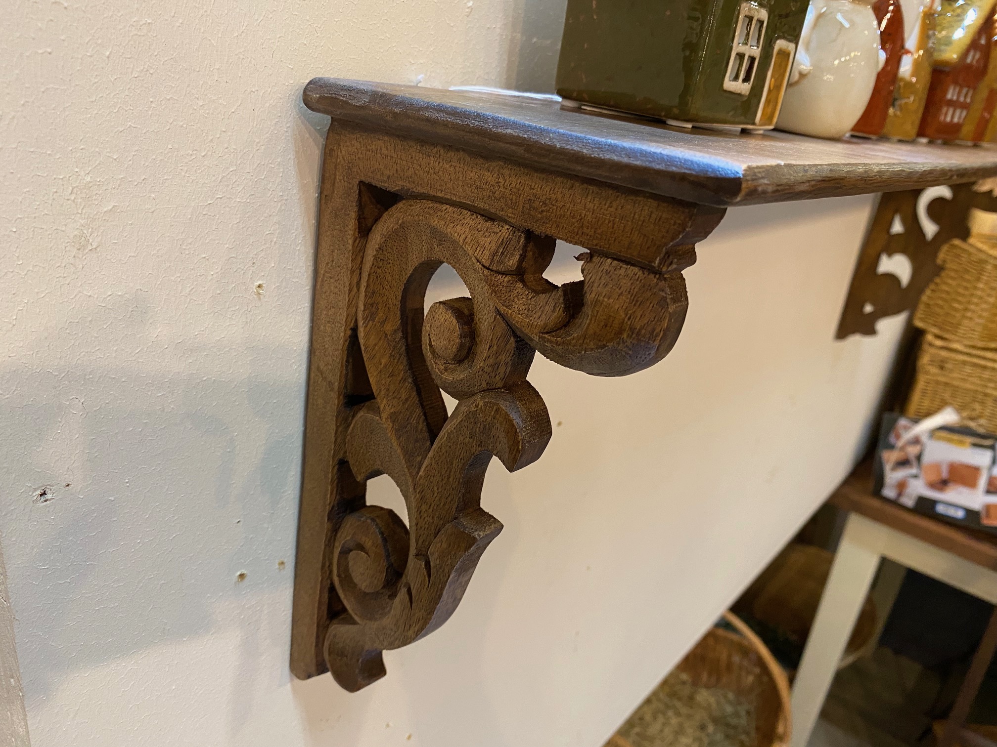 ブラケット部分も木製一体型の凝った造りです