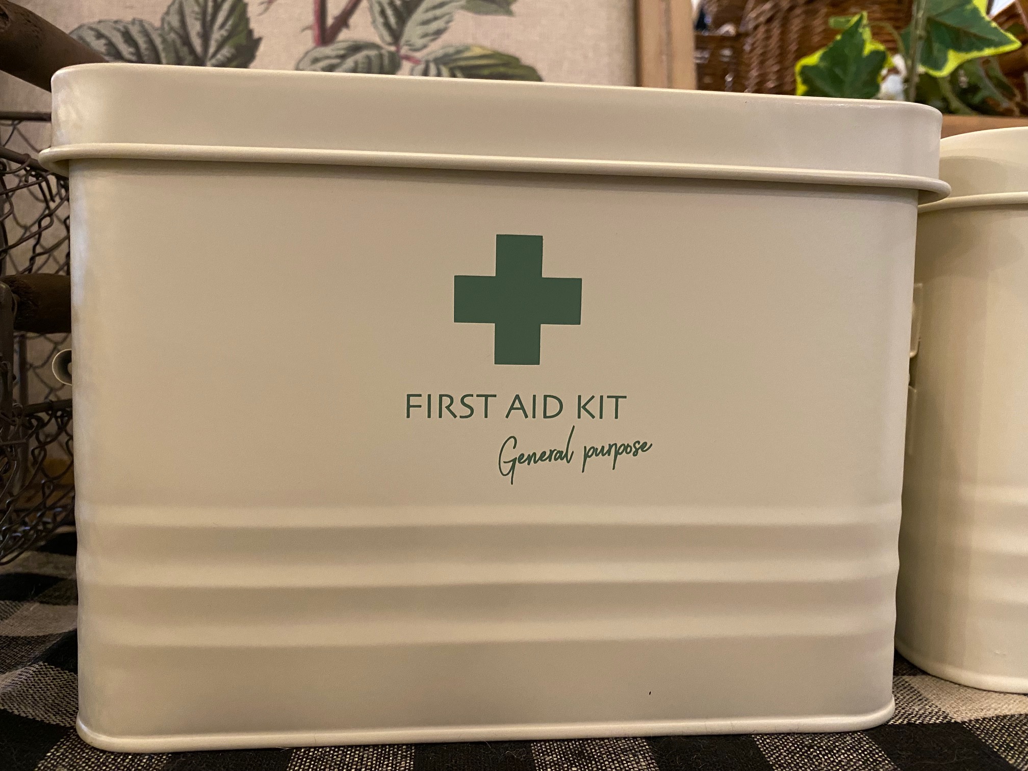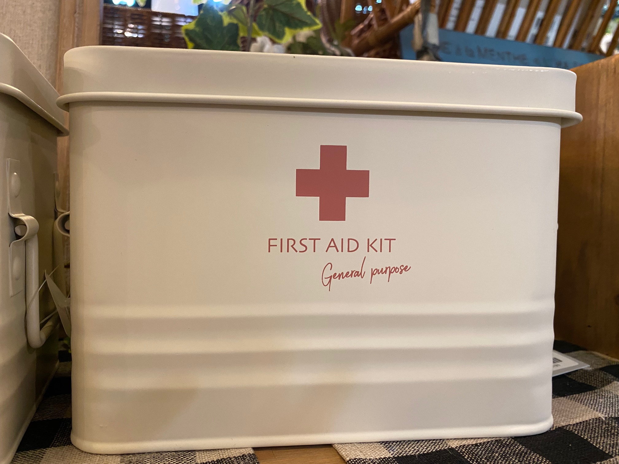 スチール素材なので丈夫で清潔に使えて、見た目も可愛いファーストエイドボックスです