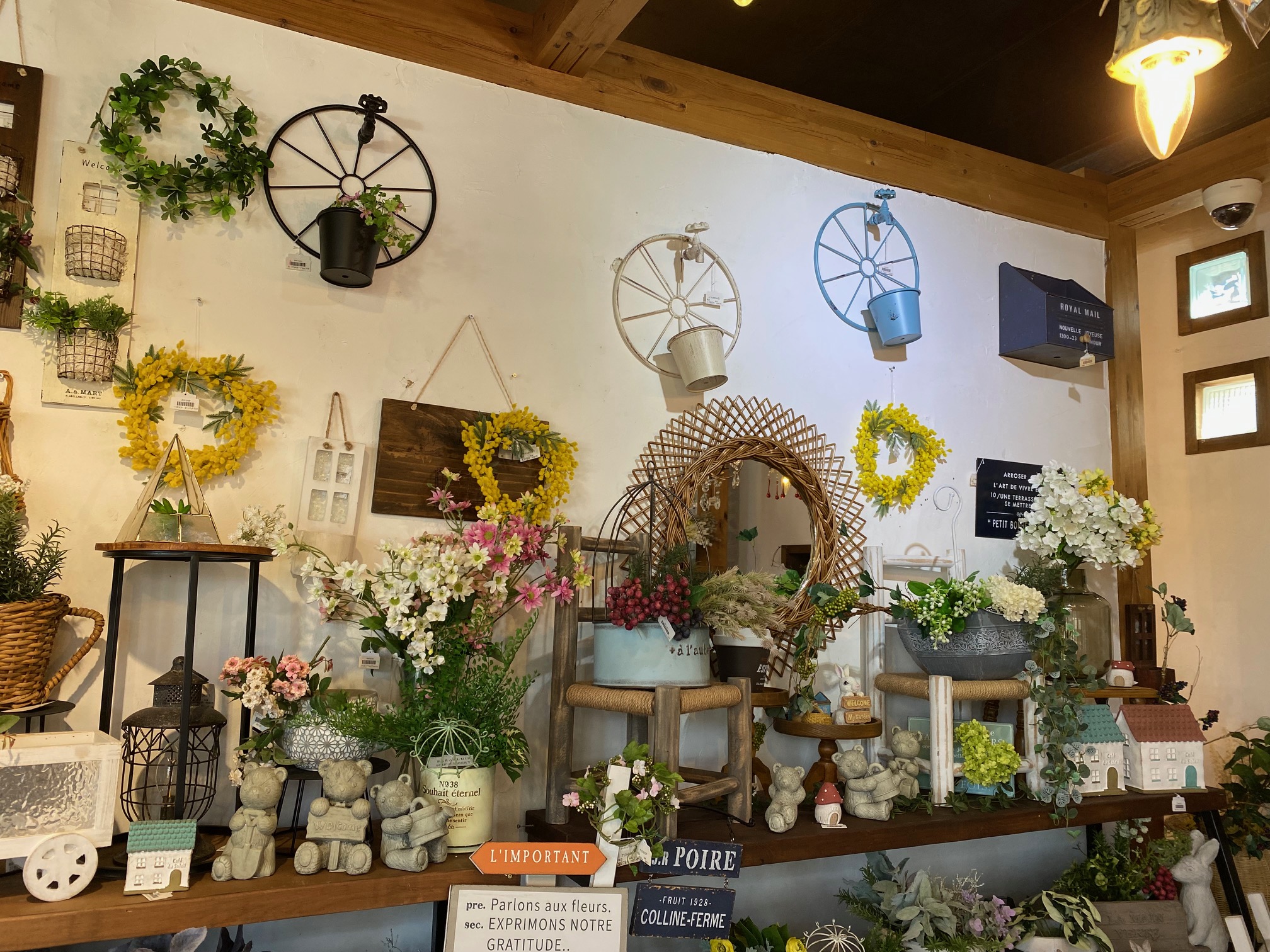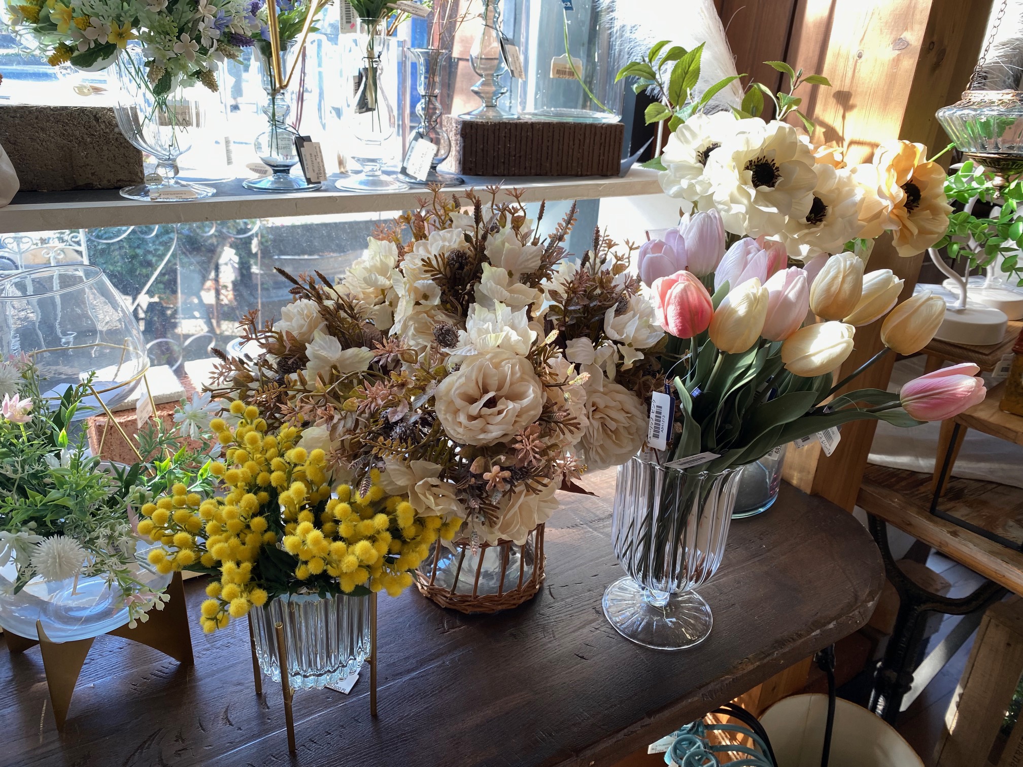 店内には春を思わせるチューリップやミモザもアーティフィシャルフラワーもあります