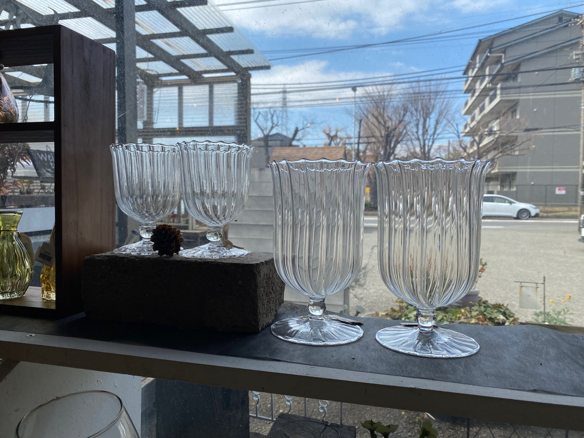 こちらはまるでワイングラスの様な形のガラスベース