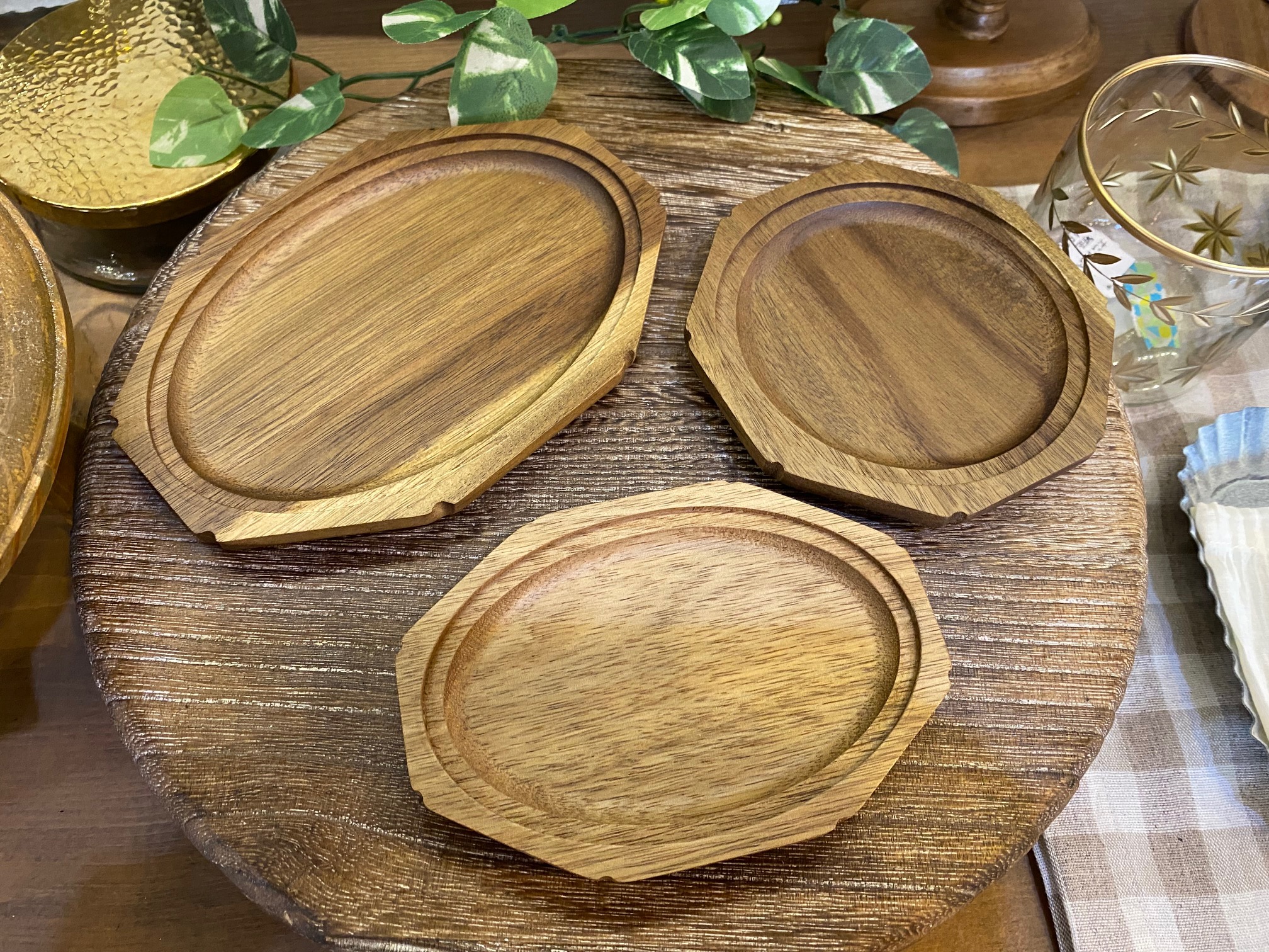 こちらはアカシアの木で出来たオーバルとラウンドの木製プレートです
