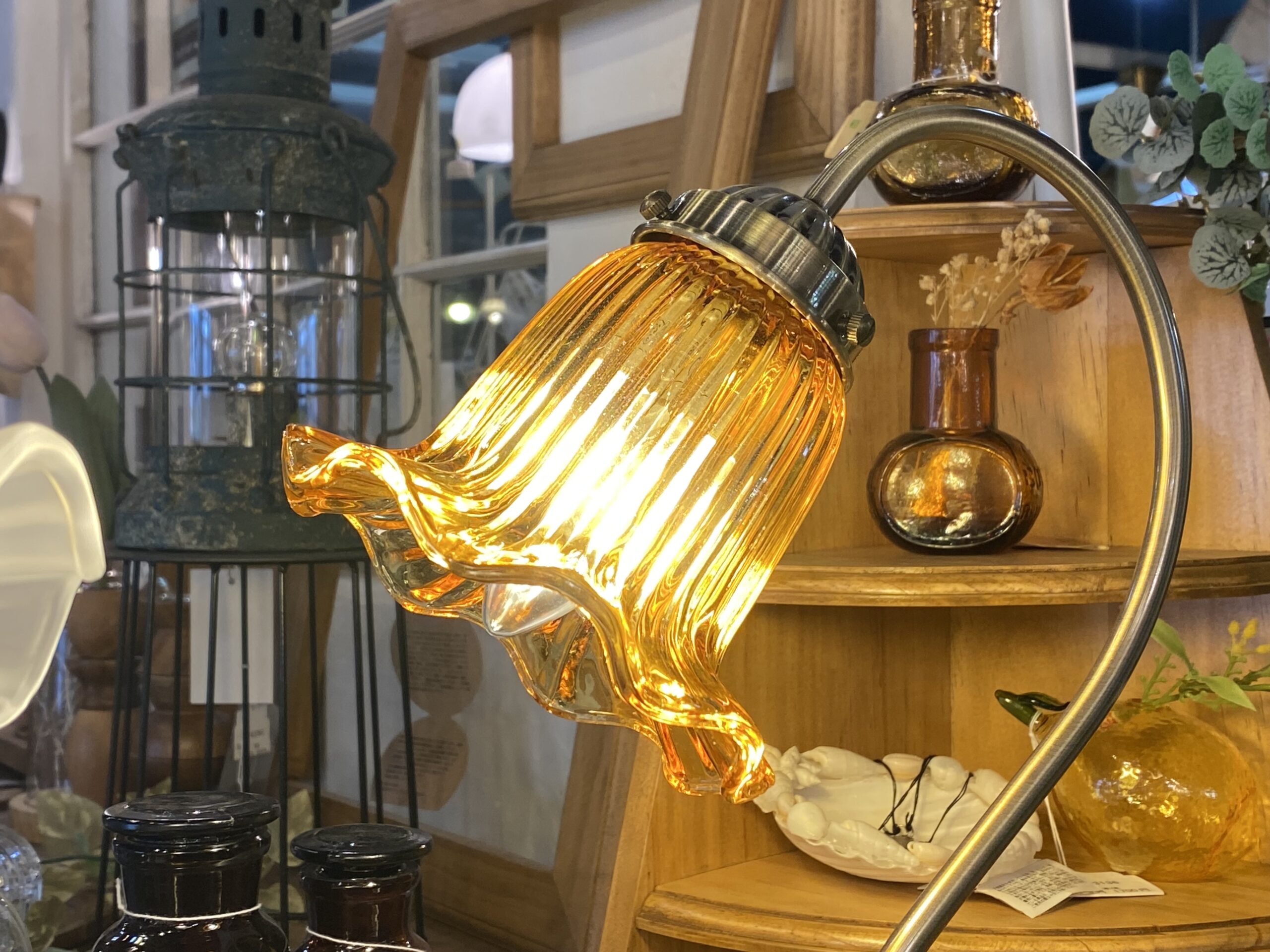 ガラスシェードのお色がミルクガラスとアンバーの2色です