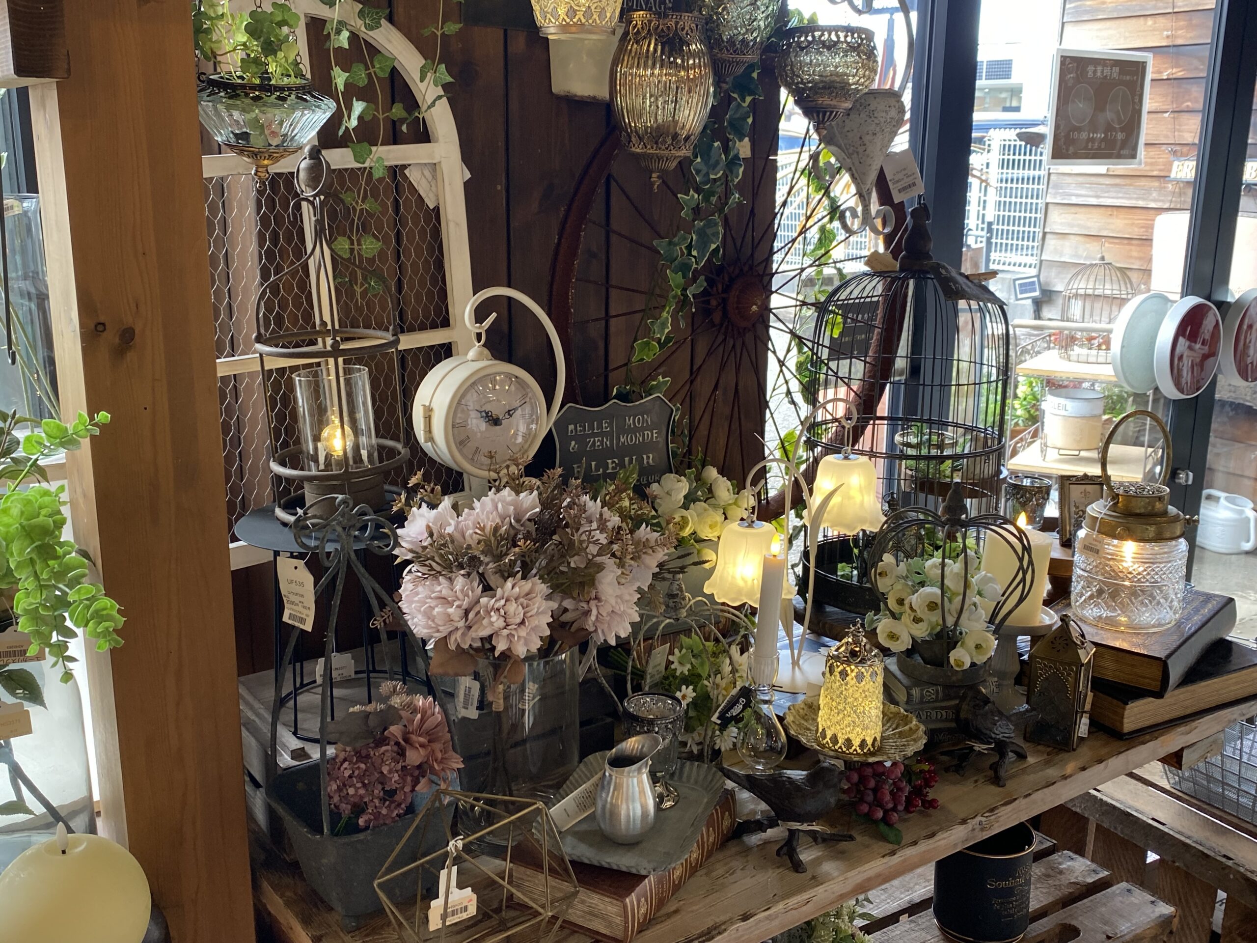 アンティーク調のお品物が沢山入荷しましたので、入り口横のディスプレイに仲間入り
