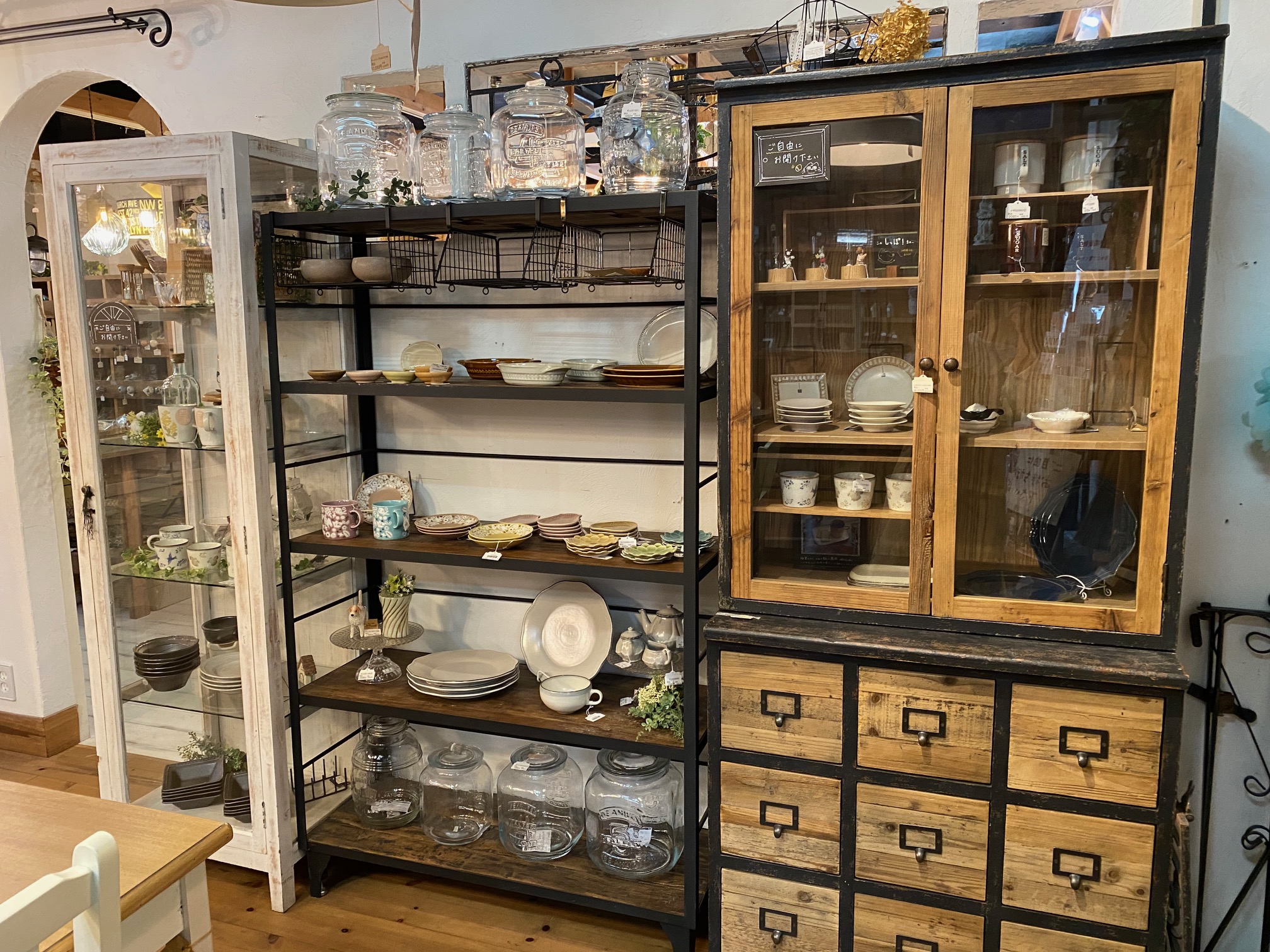 色々なプレートはもちろん、カップやピッチャー、他にもキッチンで便利な商品がおいてあります