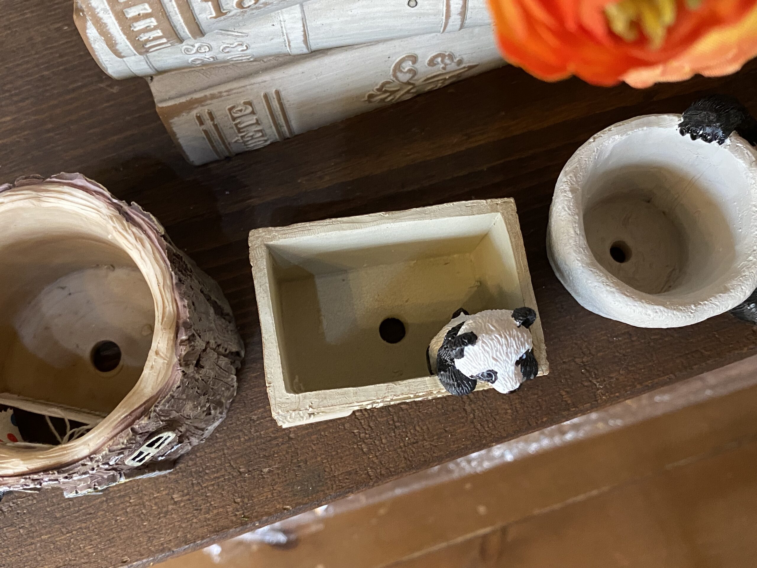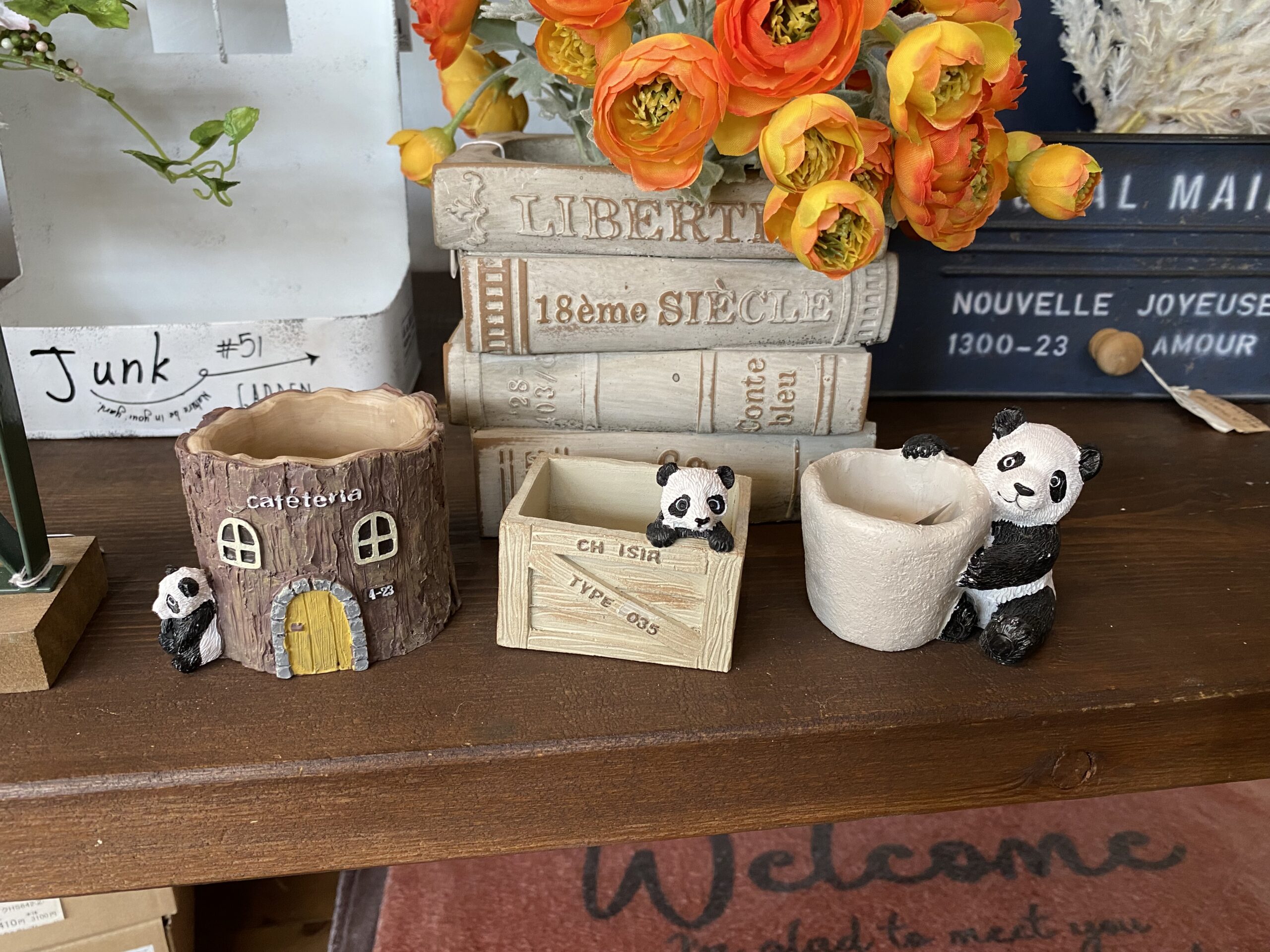 大きな鉢を抱えてるのでしょうか、大き目なサイズ感の可愛いパンダさん
